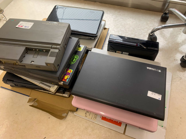 動かなくなったパソコン、古くて不要になったパソコンが多数寄せられます。